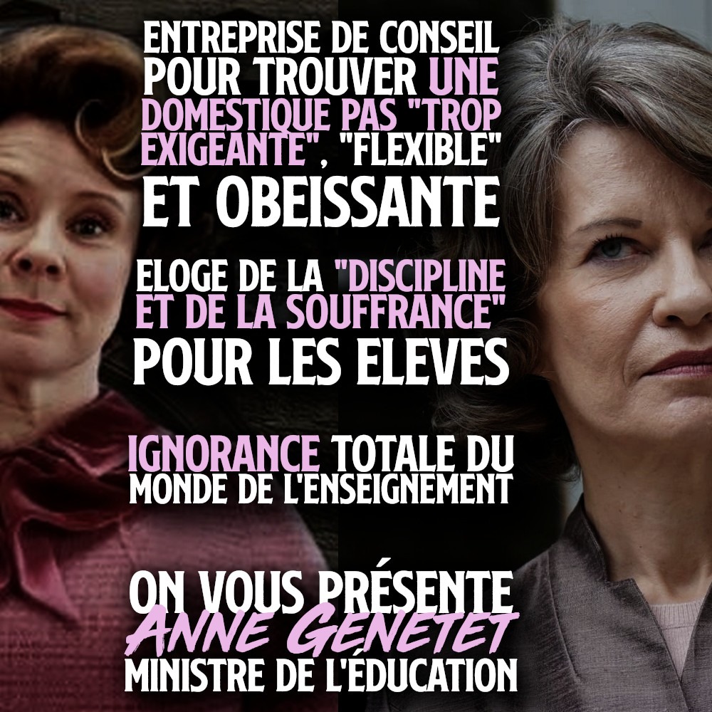 - cf. les x ministres depuis Blanquer depuis 2017 qui revendiquent, l’assument et l’imposent autant aux élèves qu’aux familles qu’aux enseignant.e.s et à toute la hiérarchie : toute la communauté éducative.