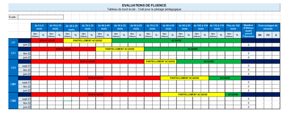 On peut mesurer l’importance que l’institution a décidé d’accorder à cette « fluence », dont le terme était inconnu dans les écoles jusqu’à l’arrivée de Jean-Michel Blanquer comme ministre de l’Education nationale, à des préconisations comme celles de la rectrice de l’académie de Strasbourg, qui prend soin de s’adresser elle-même par courrier aux directrices et directeurs d’école et aux professeur•e•s des écoles le 28 septembre 2021 au sujet de tests de fluence. Sont ainsi proposés 1 test annuel pour les CP (qui ont déjà 2 périodes d’évaluations nationales), 2 pour les CE1 (qui ont 1 période d’évaluations nationales) et 3 tests dans l’année pour toutes les autres classes. Un tableau de bord est recommandé aux écoles, qui indique les seuils de réussite, en CP à partir de 50 mots lus à la minute, en CE1 à partir de 70 mots/minute, en CE2 : 90 mots/minute, en CM1 : 110 mots/minute et en CM2 : 120 mots/minute.