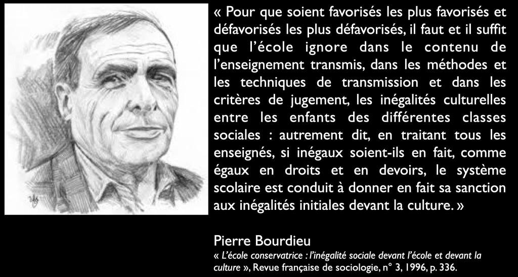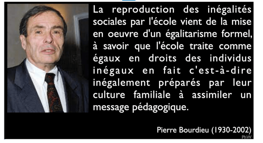Pierre Bourdieu sur l’origine de la reproduction des inégalités sociales par l’école. Citation de Pierre Bourdieu